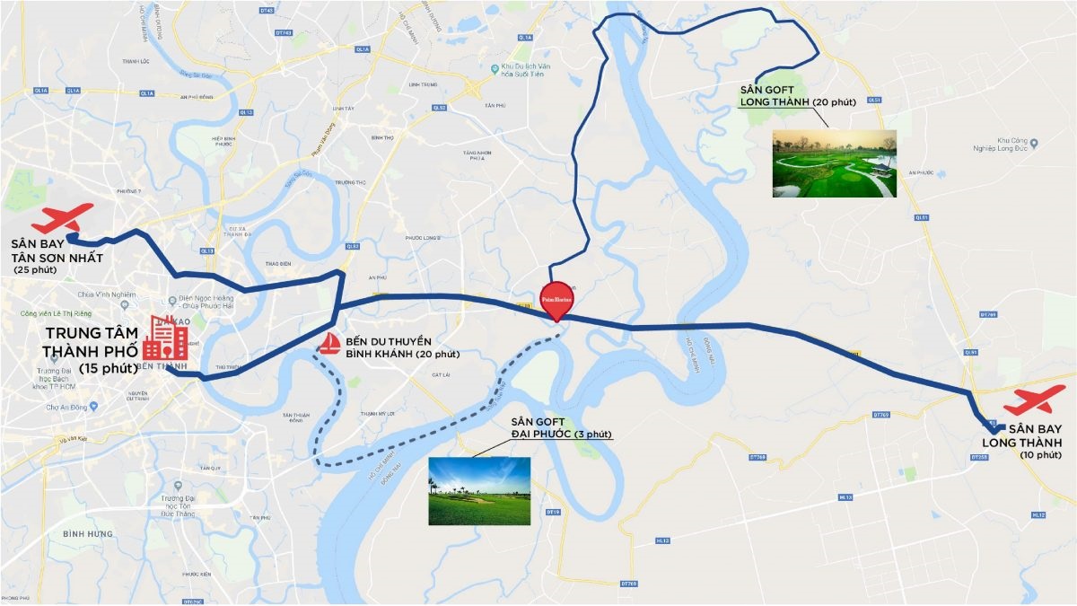 30 phút kết nối nhanh chóng đến Trung tâm Quận 1 thông qua tuyến Cao Tốc Long Thành – Dầu Giây à Đại Lộ Mai Chí Thọ