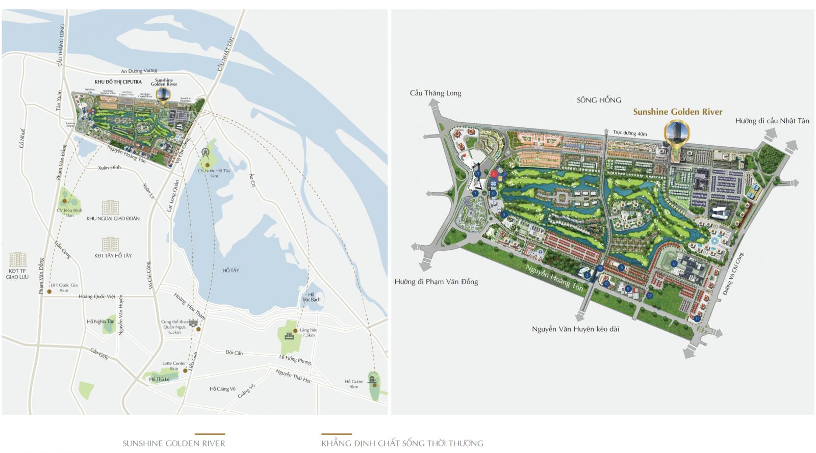 Sunshine Golden River nằm ngay liền kề tại KĐT Ciputra và thuộc tổ hợp hàng loạt Các dự án của CĐT Sunshine Group bao gồm: Sunshine City; Sunshine Riverside; Sunshine Crystal River; Sunshine Wonder Villas;…
