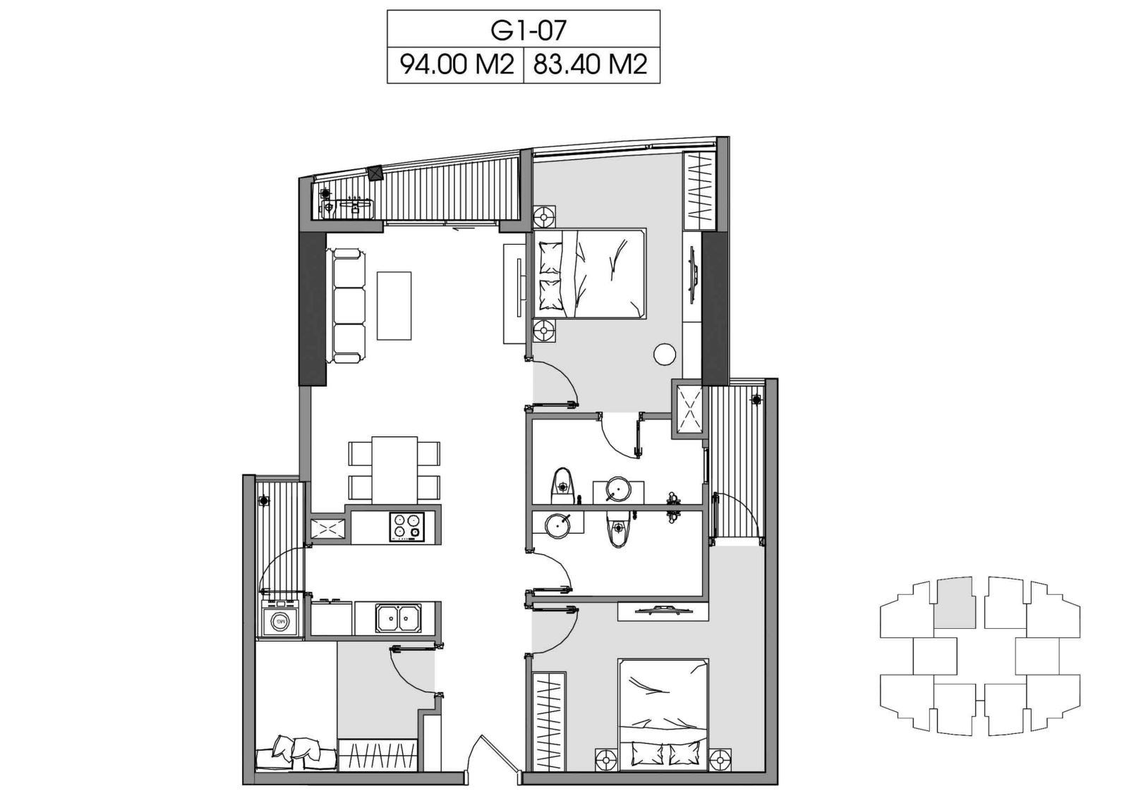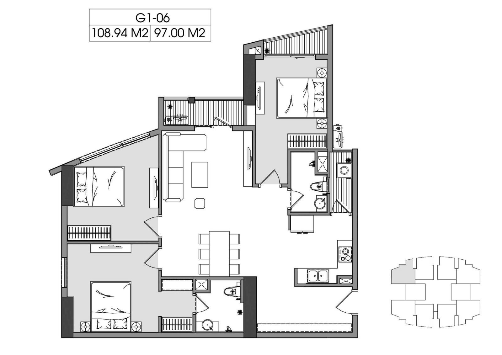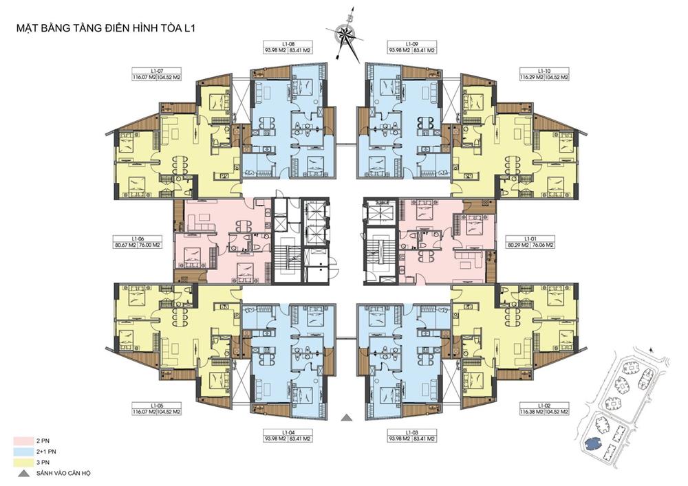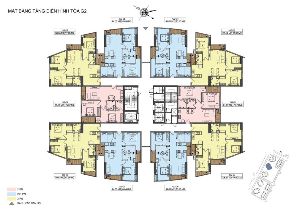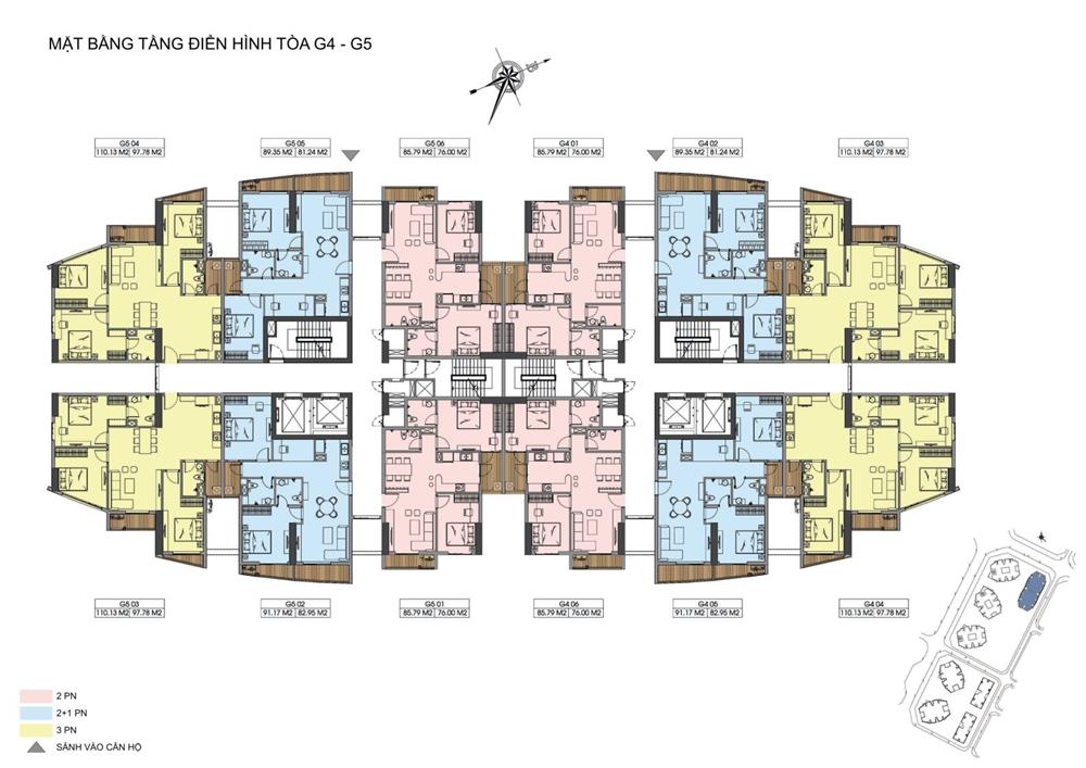 + Căn hộ 03PN: 83m2 – 97m2 – 106m2