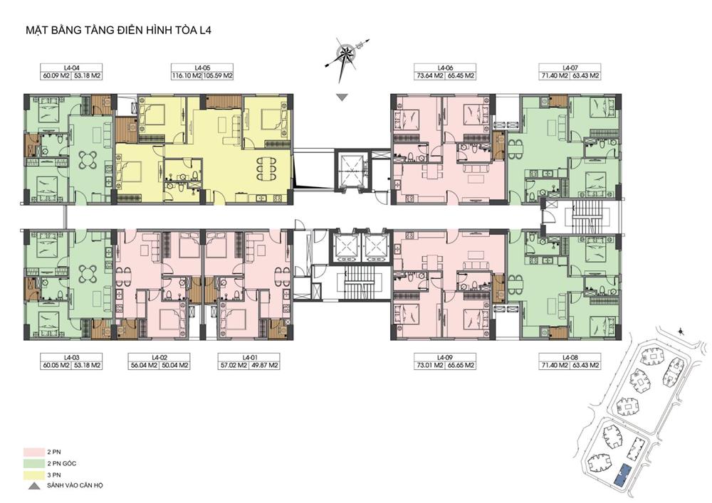 + Căn hộ 2PN: 50m2 – 53m2 – 63m2 – 65m2 – 76m2