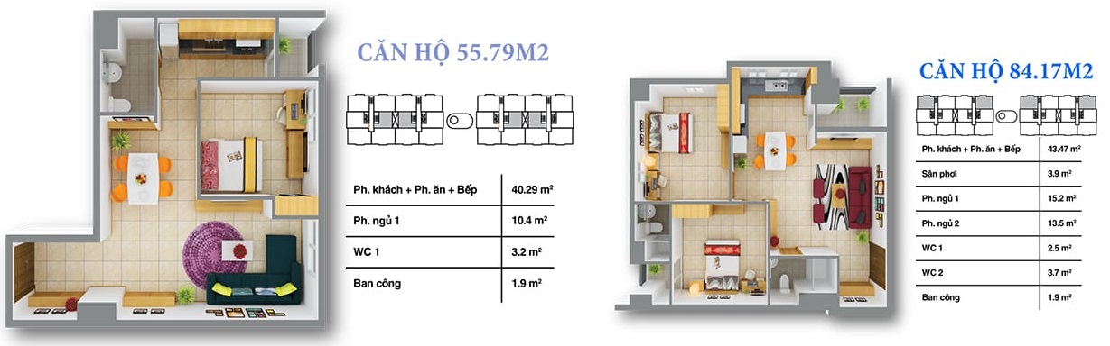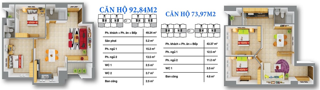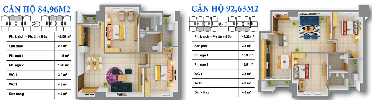 - Diện tích căn hộ: 56 - 92 m2