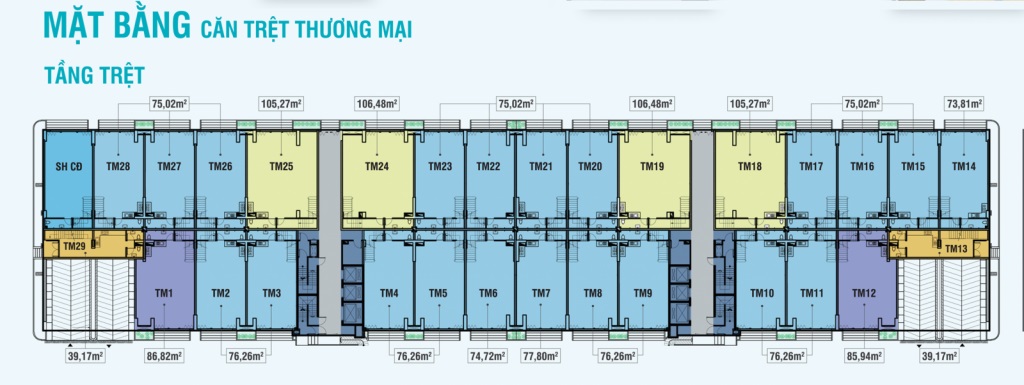 + TTTM bố trí tại tầng trệt phục vụ nhu cầu mua sắm, tiêu dùng cho cư dân