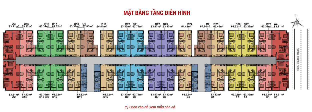 + 28 căn hộ loại 2PN có diện tích từ 63.32-67.85 m2