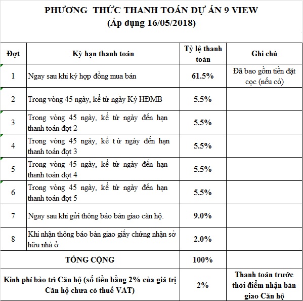 Giá Bán 9VIEW APARTMENT