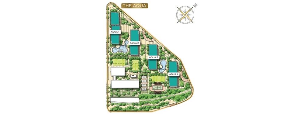 Nhìn tổng thể trên sơ đồ mặt bằng tổng thể bạn dễ dàng nhìn thấy khu đô thị Vinhomes Golden River được chia làm 4 phân khu chính đó là ( The Front, The Luxury, The Aqua, The Victoria). Quần thể tòa tháp căn hộ The Aqua Vinhomes Golden River gồm (Aqua 1, Aqua 2, Aqua 3, Aqua 4) nằm về phía Đông Bắc của dự án căn hộ Vinhomes Golden River.