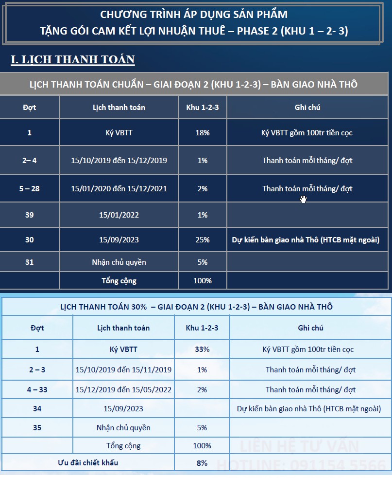 – Các đợt sau: Thanh toán 1%/tháng, kéo dài trong 2-3 năm.