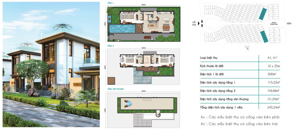 Các sản phẩm có 1 phòng khách + 1 phòng ăn + 3 phòng ngủ đã được kết hợp cùng hệ thống bể bơi quanh biệt thự, đem lại không gian nghỉ dưỡng tuyệt vời cho mọi du khách.
