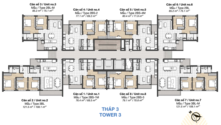 + Số căn trên 1 tầng: 8 căn/tầng