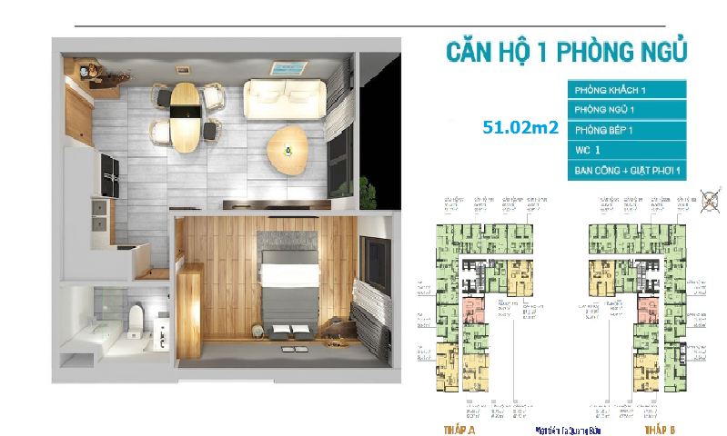 Diện tích căn hộ: 51.02 m2 – 97.92m2