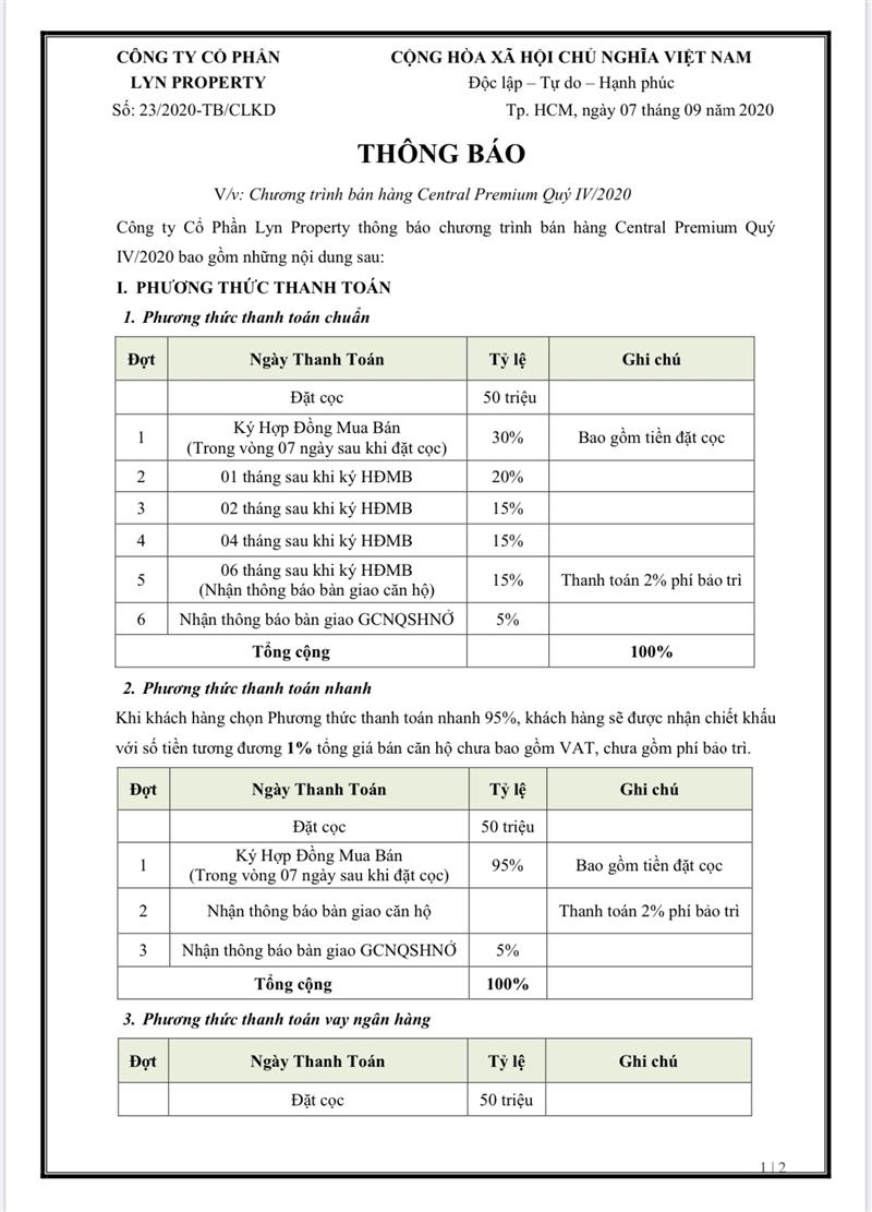 THÔNG TIN DỰ ÁN CENTRAL PREMIUM