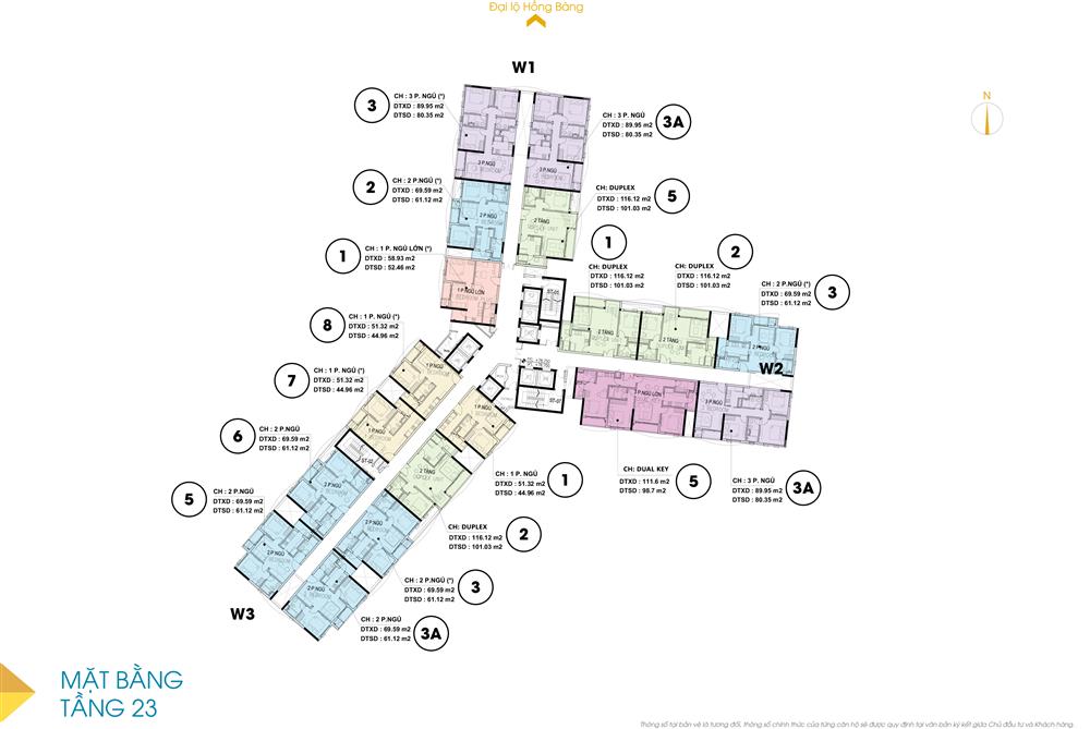 + Căn hộ 3 PN: 77 căn diện tích 89m2