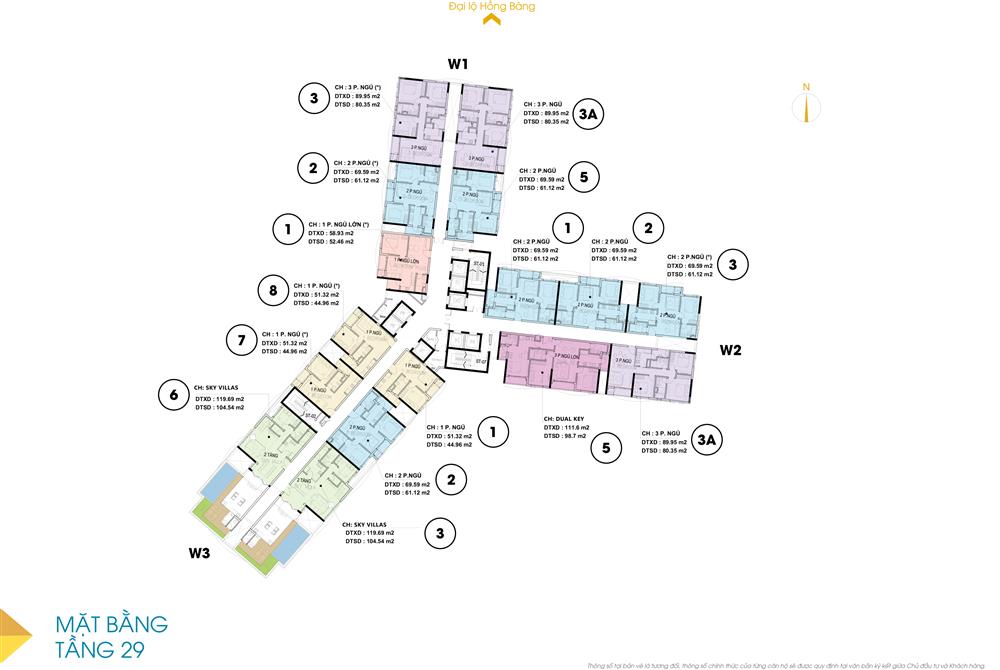 + Căn hộ Dual key: 25, 1 căn/tầng từ tầng 22 – 30, diện tích 115m2