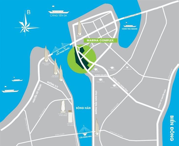 Dự án Marina Complex có quy mô phát triển, hình thành bởi nhiều phân khu bao gồm: trung tâm thương mại; khu phố đêm với các dãy phố mua sắm, rất nhiều các cửa hàng tiện lợi. Điều đặc biệt thu hút khách hàng khi đến tìm hiểu dự án đó chính là vị trí tọa lạc của khu đô thị nằm trên trục đường Trần Hưng Đạo, có mặt tiền hướng ra sông Hàn, tiếp giáp với biển, bán đảo Sơn Trà. Ngoài ra còn có bốn mặt được bao phủ bởi không gian sống xanh của thiên nhiên, mang lại sự trong xanh, tươi mát cho mọi cư dân tương lai của dự án.