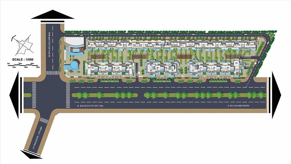 Tổng quy hoạch dự án với diện tích đất bao gồm 25.054 m2 có mật độ xây dựng vào khoảng 35%, trong đó các khu vực với diện tích như sau: