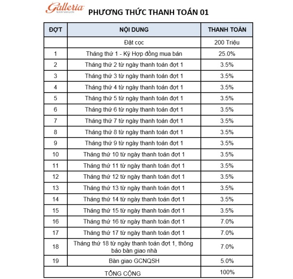 Galleria trở thành sự lựa chọn lý tưởng dành cho mọi khách hàng khi đang tìm kiếm một sản phẩm với phong cách sống mới, hiện đại, nhưng vẫn đảm bảo sự nồng ấm và phóng khoáng tại khu vực giữa lòng thành phố.