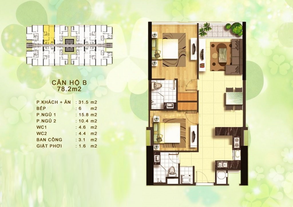 Căn Hộ Giai Việt Residence cung cấp các căn hộ có thiết kế thoáng đãng, đảm bảo mọi căn hộ có khu vực ban công rộng lớn, có nhiều diện tích để khách hàng lựa chọn từ 78-109m2.