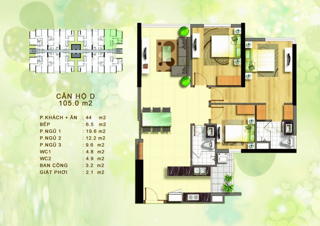 Dự án Giai Việt Residence cung cấp cho khách hàng các căn hộ với diện tích đa dạng có từ 2-3PN trong đó: