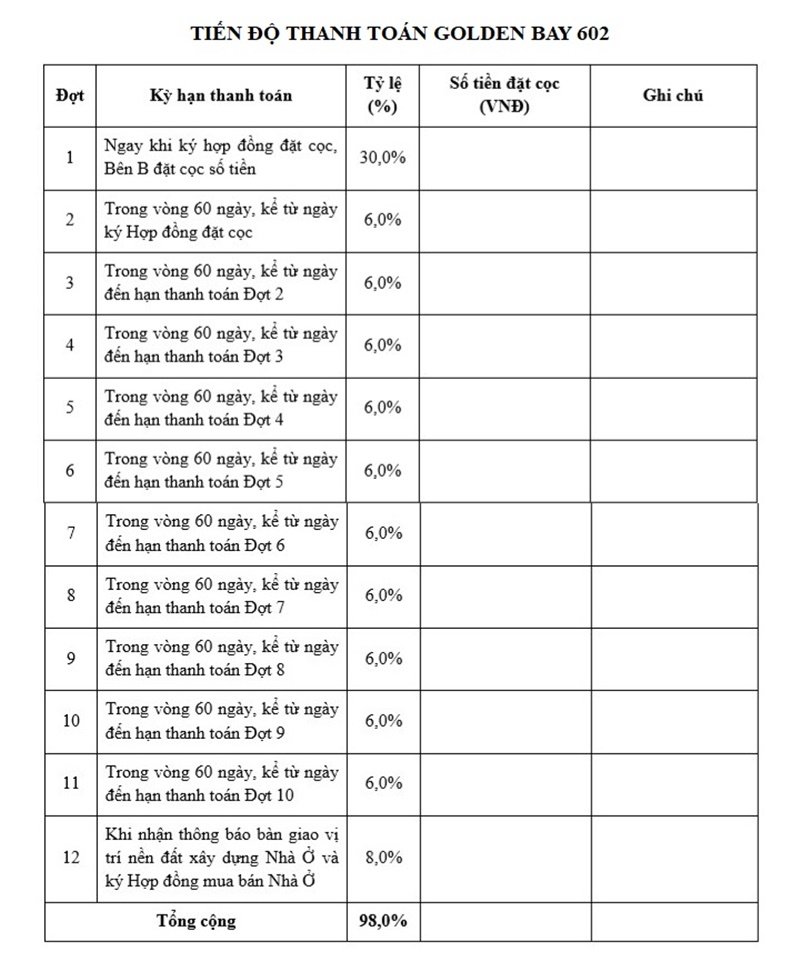 THÔNG TIN DỰ ÁN GOLDEN BAY 602