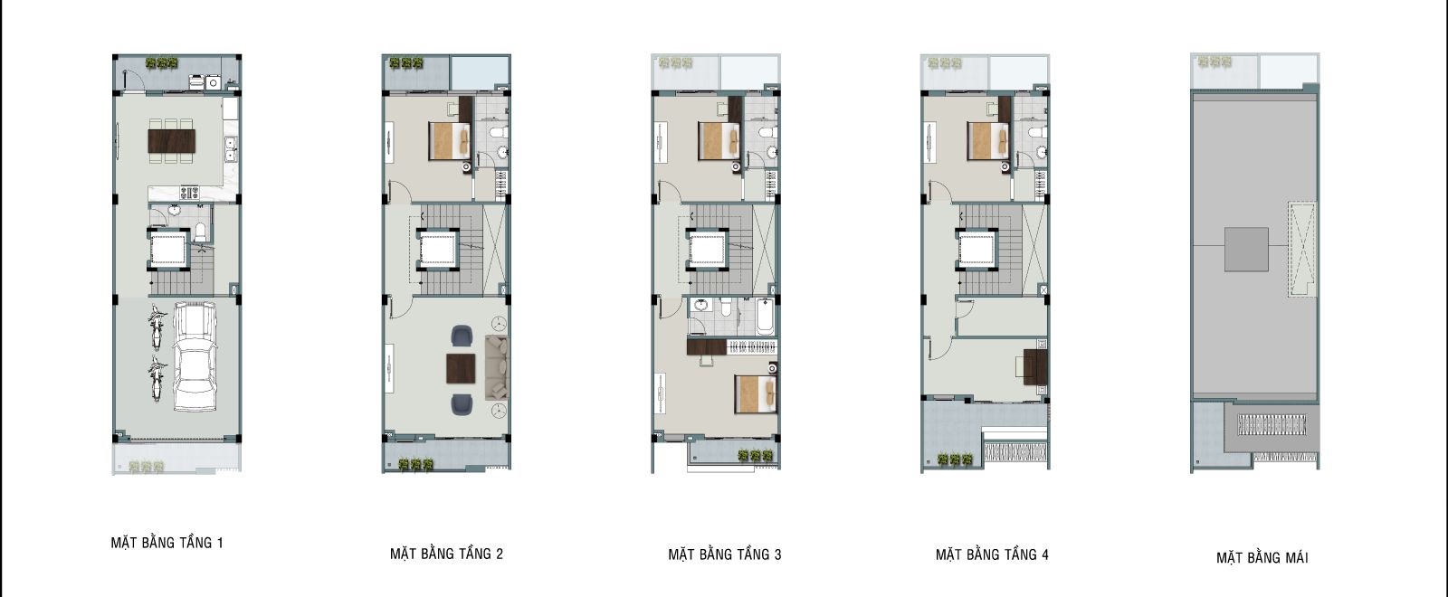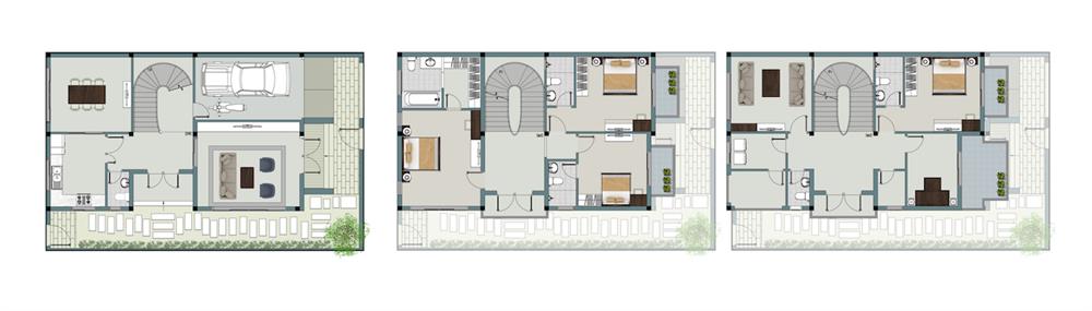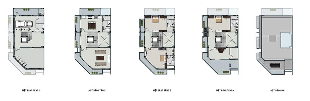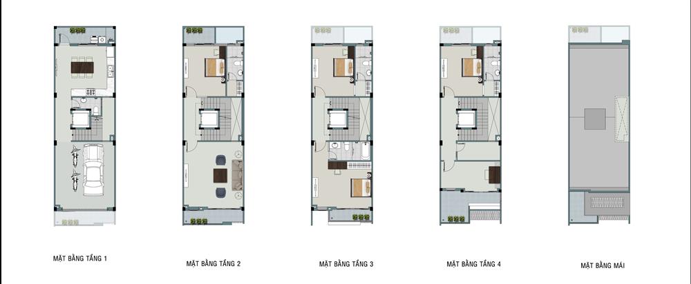 + Nhà liền kề: rộng từ 70,5 – 142m2, có chiều cao từ 4 – 5 tầng