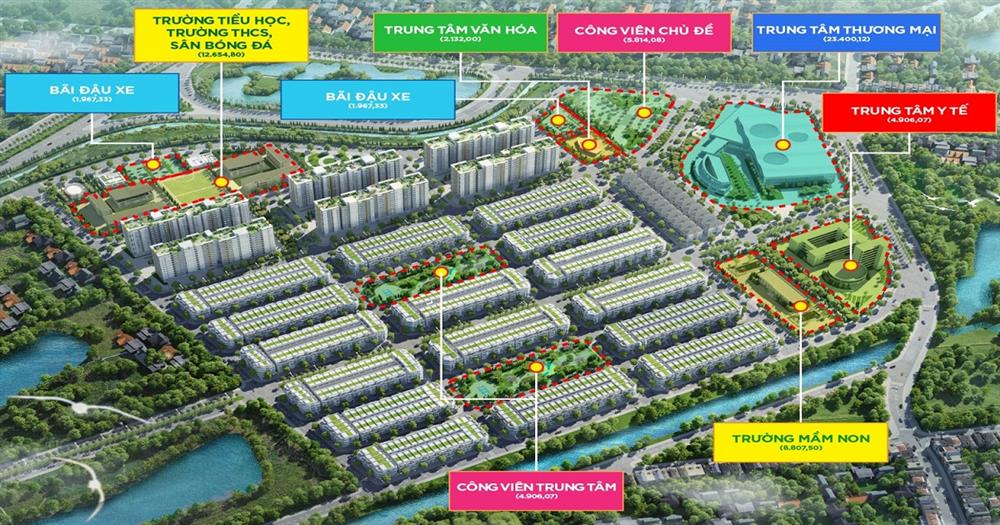 - Số lượng sản phẩm: 666 lô liền kề + 22 lô biệt thự + 6 Block chung cư