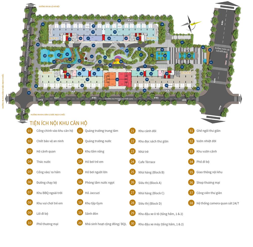 Ngay nội khu của dự án đã trang bị tới 32 hạng mục tiện ích dịch vụ đẳng cấp, đảm bảo đem lại cuộc sống xanh, chất lượng và tiện nghi hoàn hảo cho mọi cư dân bao gồm: