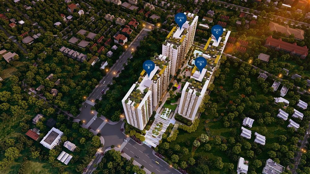 - Quy mô: 4 tòa tháp căn hộ cao 17 tầng
