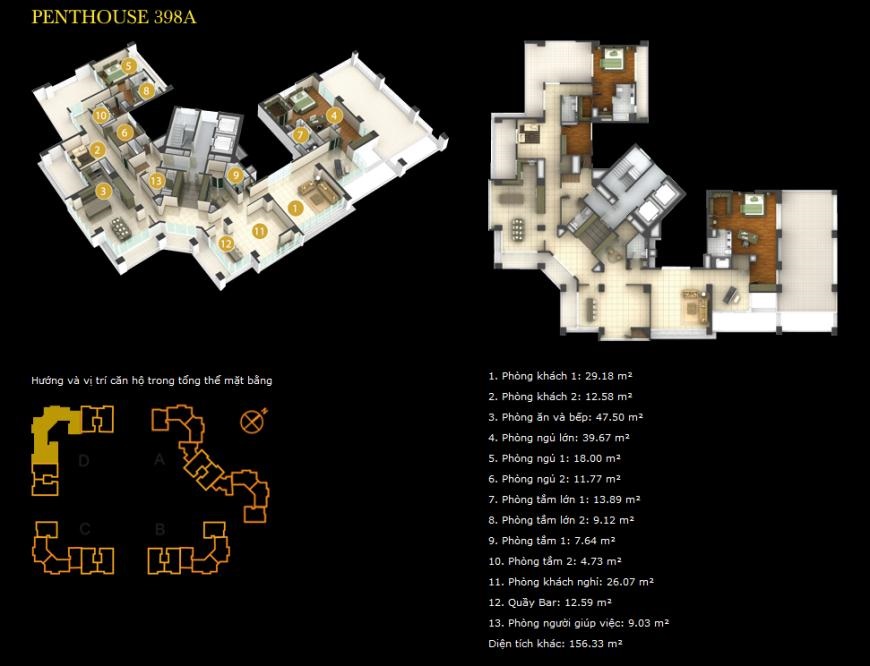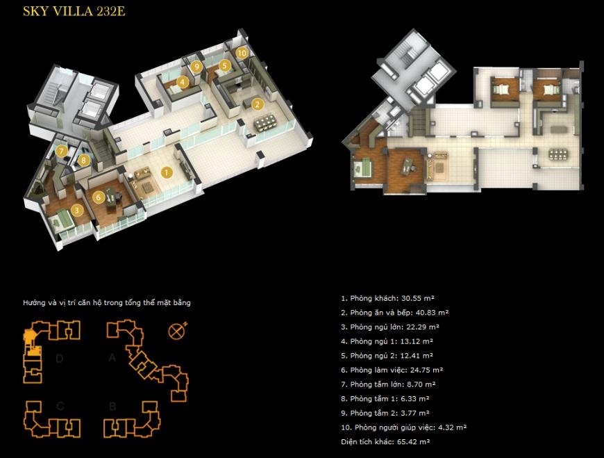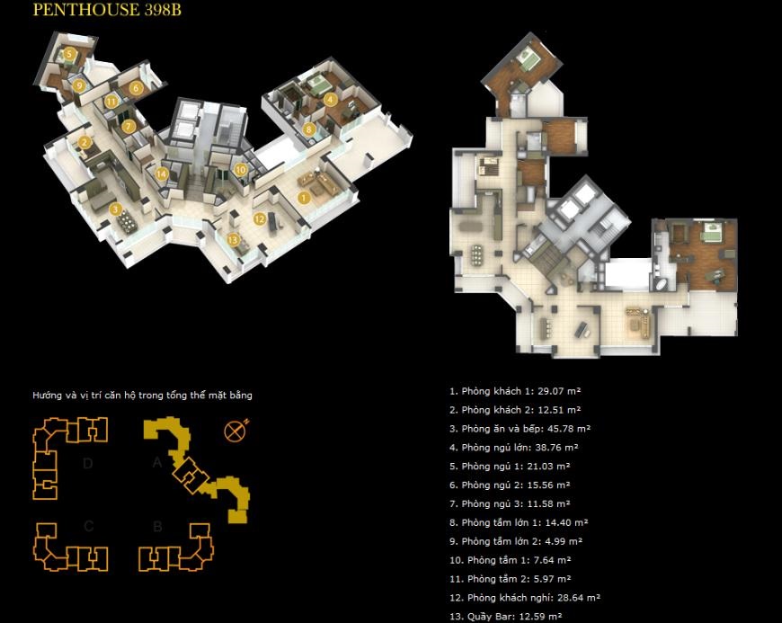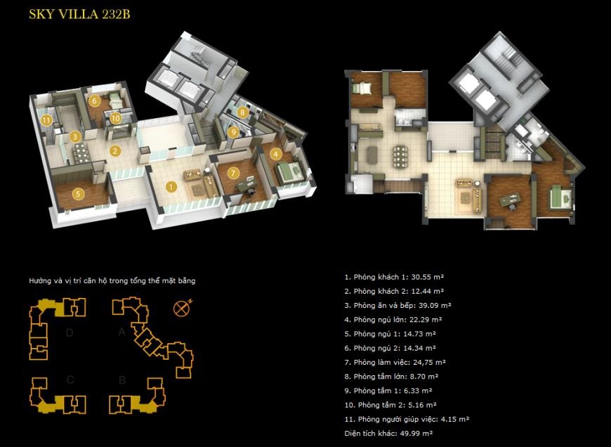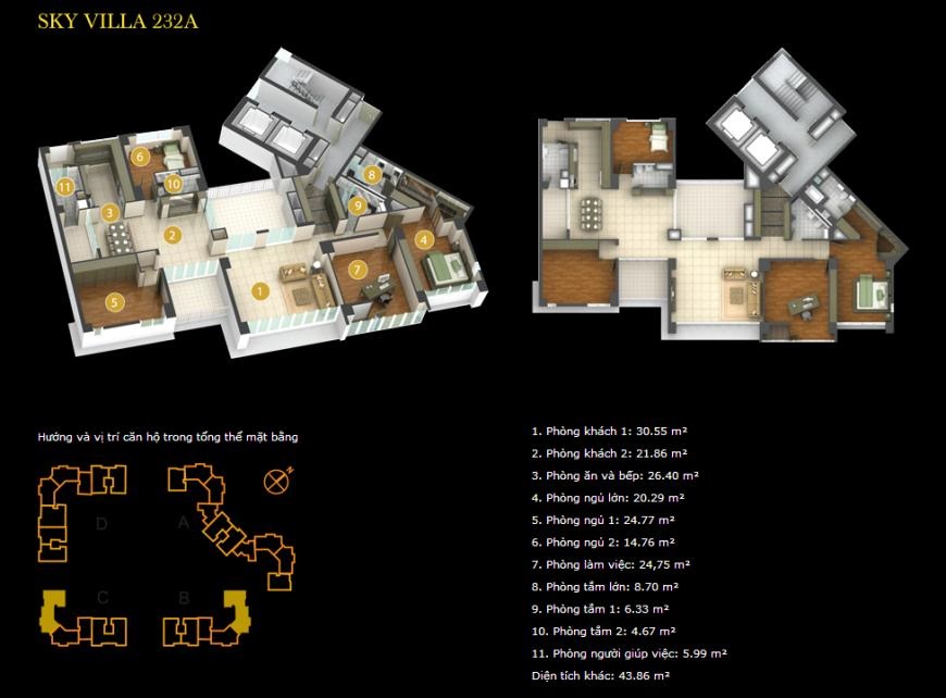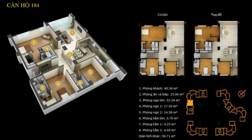 + Căn hộ 4 PN: diện tích 184m2 giá bán từ 7-8 tỷ đồng/căn