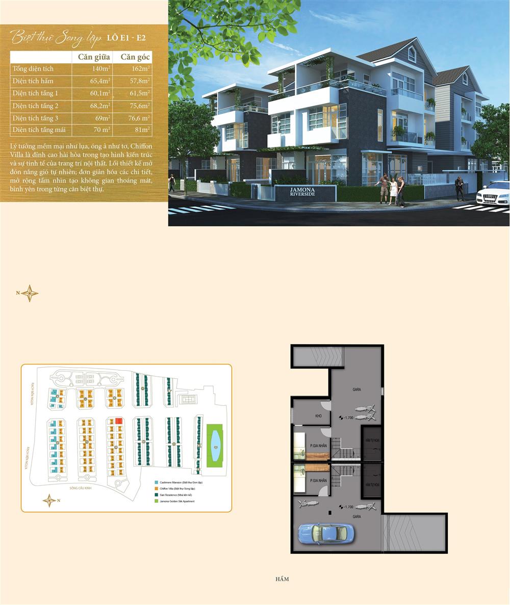 + Chiffon villa: 94 căn biệt thự song lập sân vườn, diện tích từ 126 m2 – 203 m2, được thiết kế với 1 bán hầm + 1 trệt + 2 lầu.