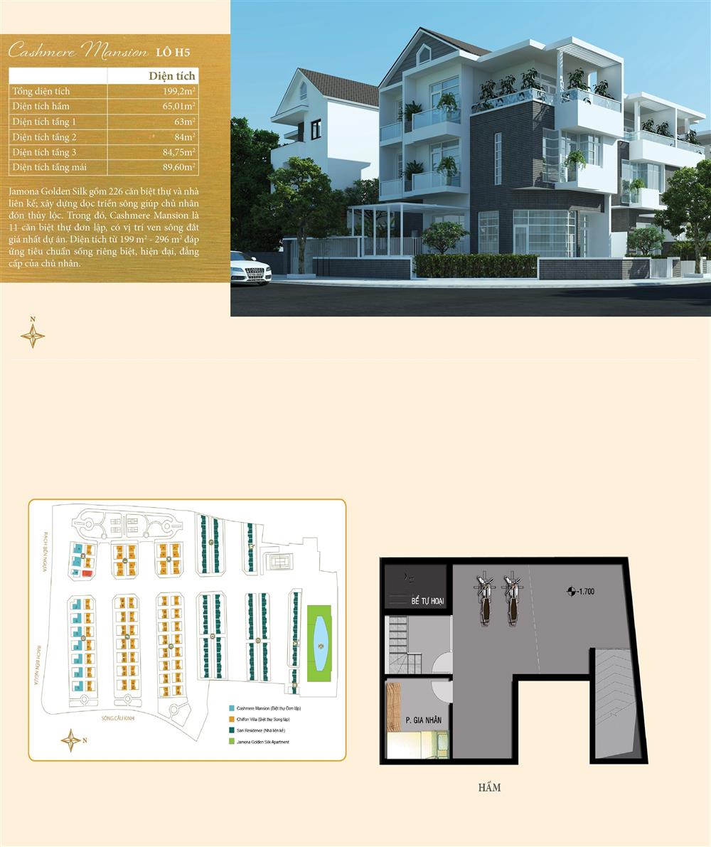 + Cashmere Mansion: cung cấp 11 biệt thự đơn lập ven sông với diện tích từ 199 m2 - 296 m2, quy mô thiết kế bao gồm 1 trệt + 2 lầu theo phong cách hiện đại tới từ Châu Âu.