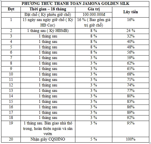 THÔNG TIN DỰ ÁN JAMONA GOLDEN SILK