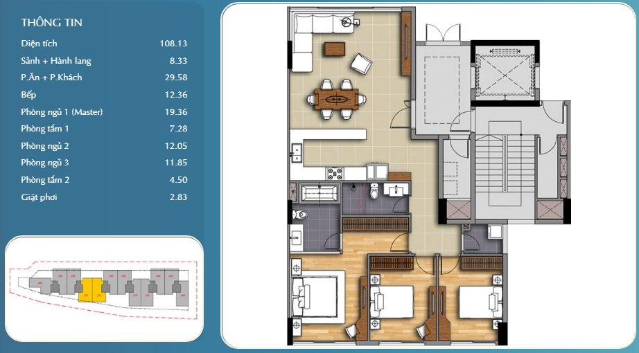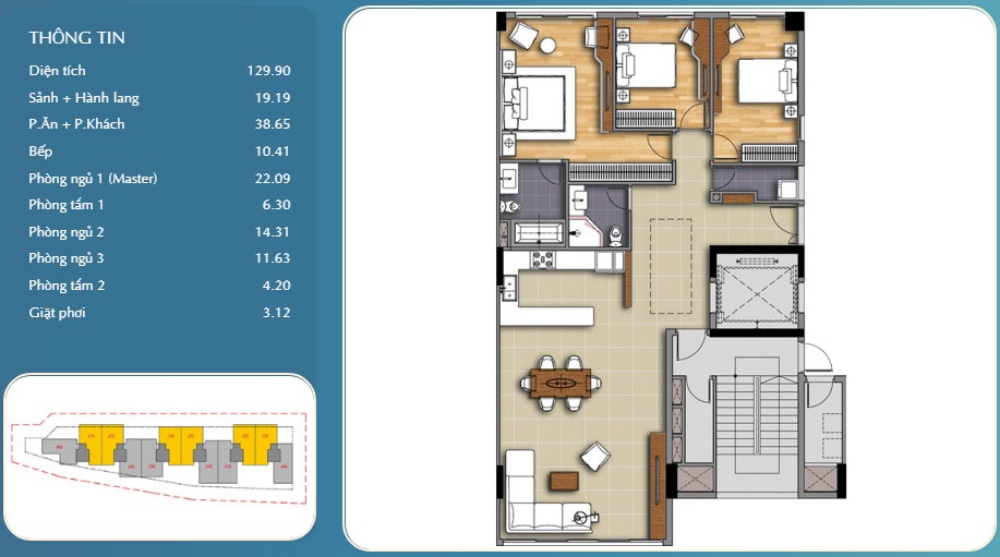Toàn bộ dự án cung cấp cho thị trường, khách hàng 210 căn hộ có diện tích: từ 97-180m2 bố trí như sau: