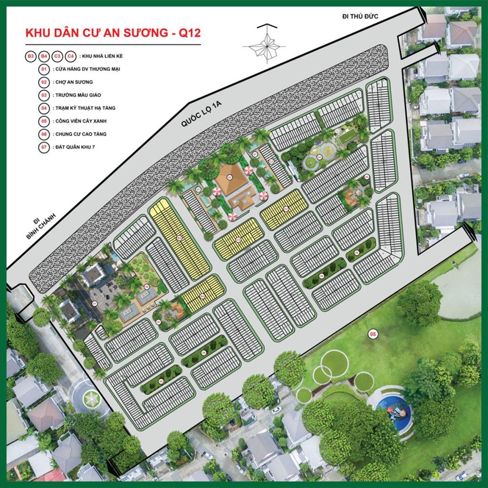 Dự Án An Sương Residence Quận 12 đã được quy hoạch, mật độ xây dựng chỉ với 47,85% trong tổng diện tích rộng 64ha quy hoạch thành các phân khu chức năng bao gồm: