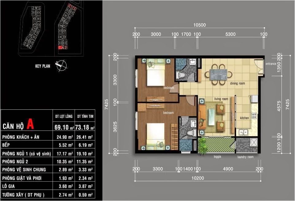 + Căn hộ cao tầng: quy mô bao gồm 2 tòa tháp căn hộ cao 26 tầng, có tổng số 1400 căn hộ 1-2PN, diện tích từ 46m2-69m2.