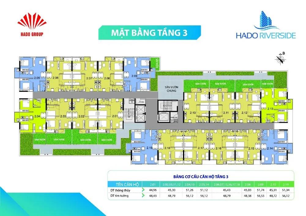 + Tầng 3 – 15: bố trí căn hộ với số lượng 256 căn hộ