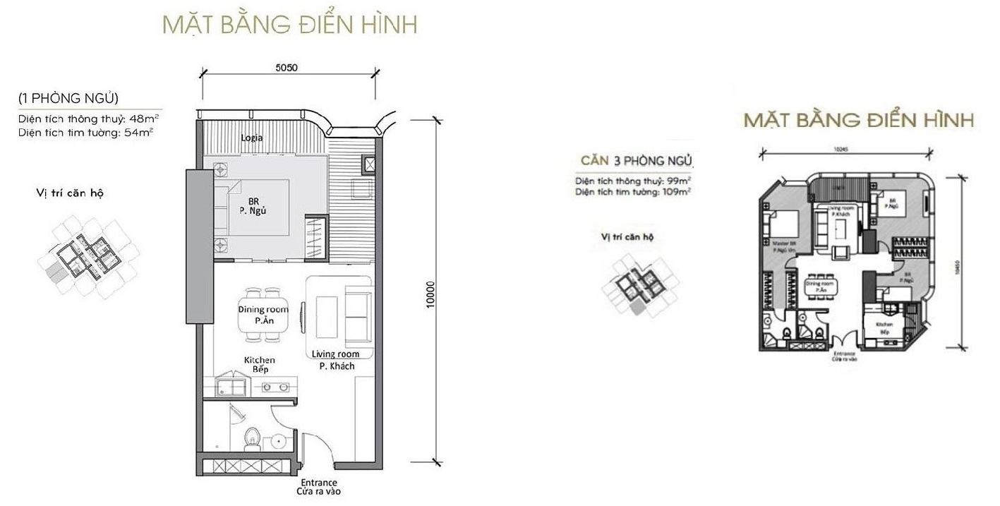 – Loại 3 phòng ngủ: 106 – 109 – 133 – 145 m2