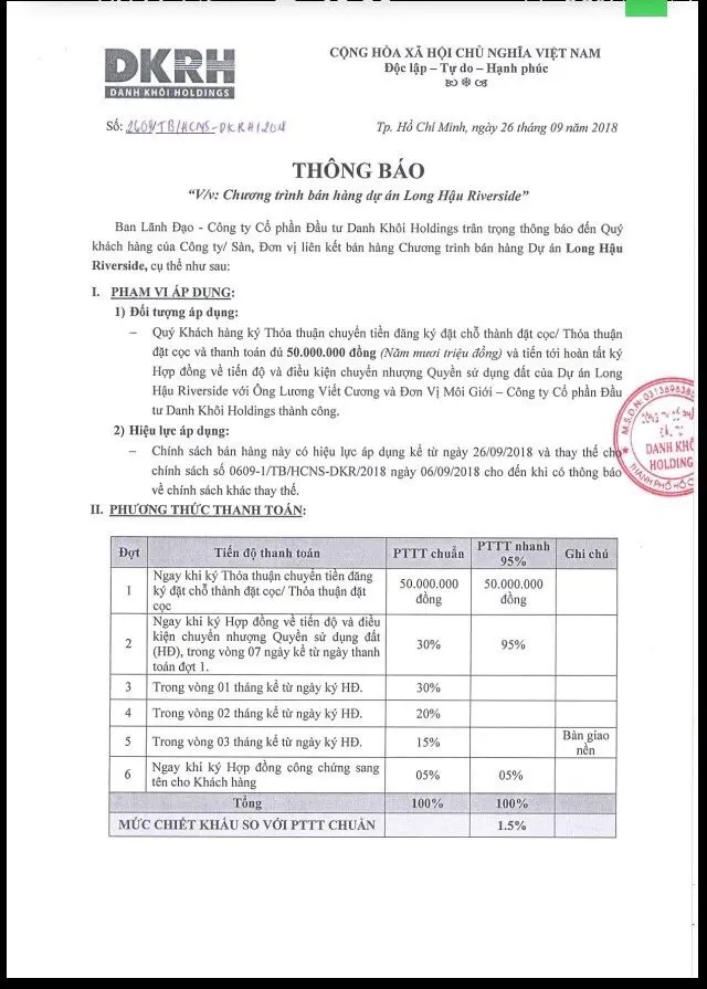 + Đợt 5: KH thanh toán 5% ngay khi thông báo ký công chứng