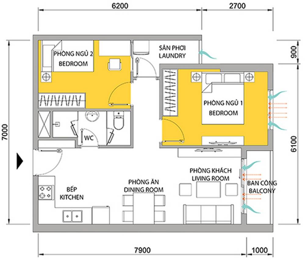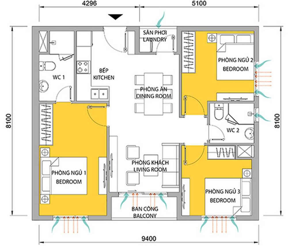 Nhờ lối thiết kế này đã giúp cho cư dân của dự án đảm bảo công năng sử dụng, đầy đủ chức năng của một căn hộ cao cấp khi đem lại cho khách hàng nhiều sự lựa chọn từ 2-3PN, diện tích rộng rãi từ 57m2 – 94 m2.
