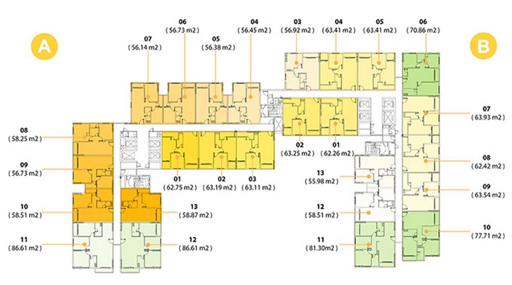 Các tòa tháp của dự án đã được quy hoạch, phân chia bao với hai khối riêng biệt A-B như với chiều cao tới 25 tầng như sau: