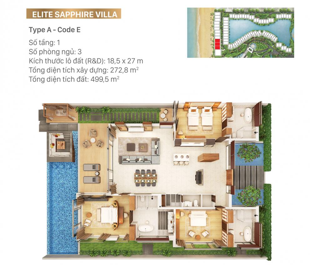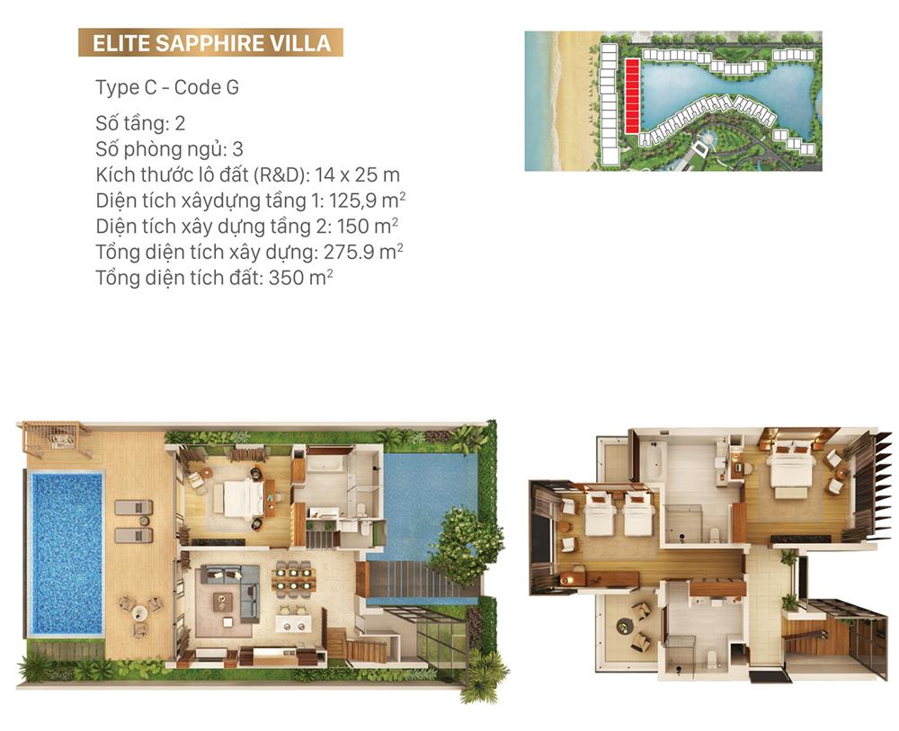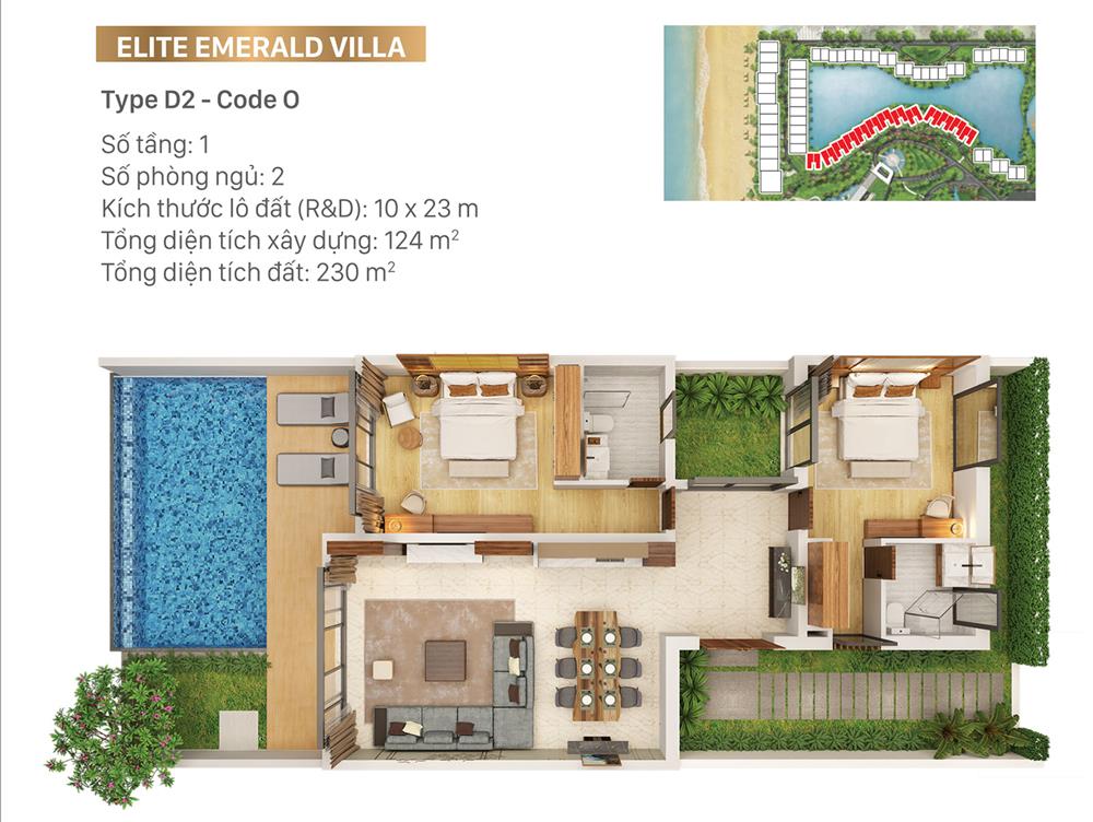 Tổng cộng số lượng sản phẩm bao gồm 329 căn hộ khách sạn cùng với 79 căn biệt thự đã được quản lý vận hành bởi Movenpick Hotel & Resort.Toàn bộ dự án có mật độ xây dựng rất thấp chỉ từ 12.32% và phần diện tích rộng lớn còn lại là tiện ích dịch vụ, cảnh quan sống xanh trong lành tự nhiên.
