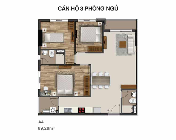 - Diện tích căn hộ Moon Light Garden: từ 55 -80 m2 ( 1 đến 3 phòng ngủ)