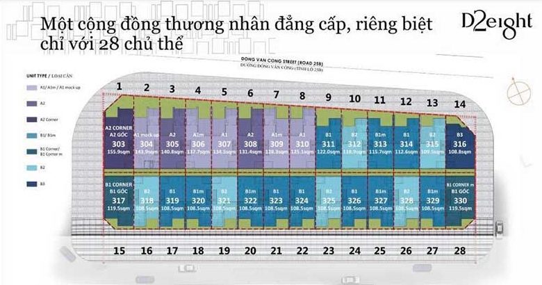 Mặt bằng 28 căn Nhà Phố D2EIGHT VISTA VERDE của Capitaland tại Thạnh Mỹ Lợi Quận 2