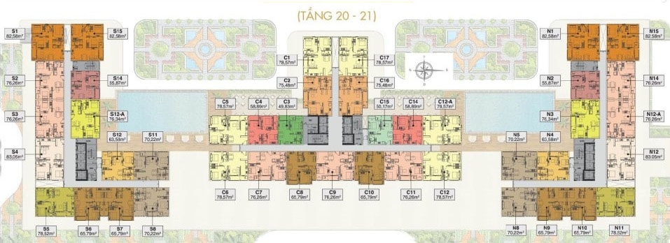 - + Tòa North – South cao 22 tầng