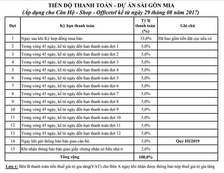 THÔNG TIN DỰ ÁN SAIGON MIA
