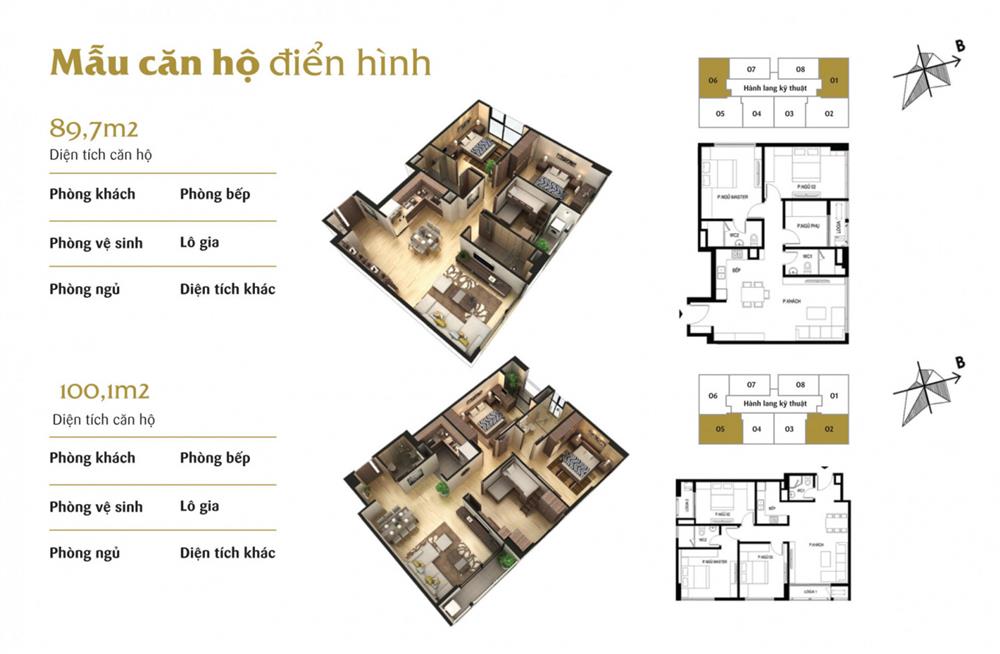 + Căn hộ 03PN: Diện tích từ 84.1 – 114.1 m2