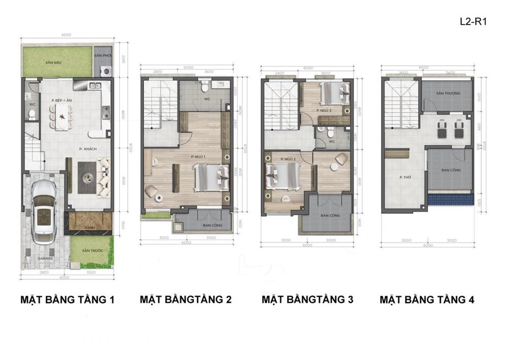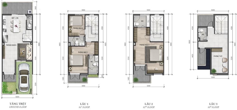 Kết cấu của từng sản phẩm bao gồm có 1 trệt + 2 lầu và 1 trệt + 3 lầu. Quy hoạch của từng sản phẩm nhà ở đều có gara ô tô; sân vườn để trồng cây xanh ở phía trước, còn khu vực phía sau dành cho việc giặt giũ.