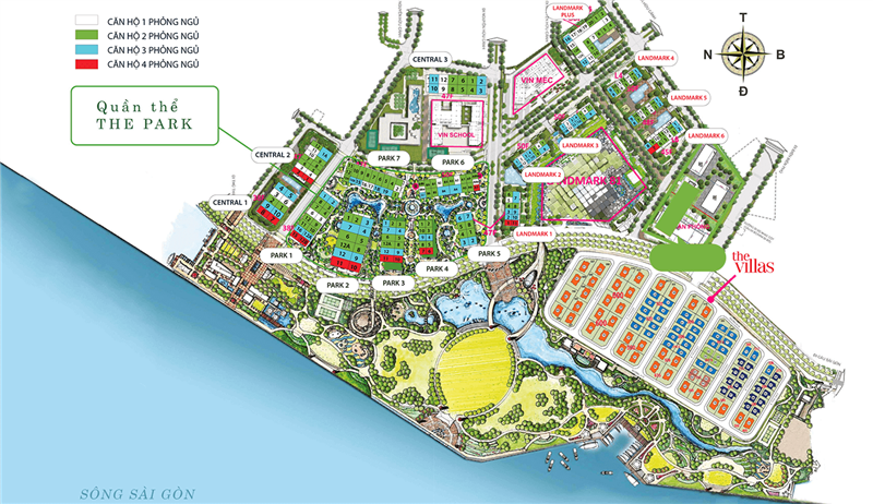 - Loại hình: căn hộ cao cấp, nhà phố thương mại thông tầng (duplex shophouse); Căn hộ sân vườn thông tầng (duplex gardenhouse); Biệt thự trên không penthouse