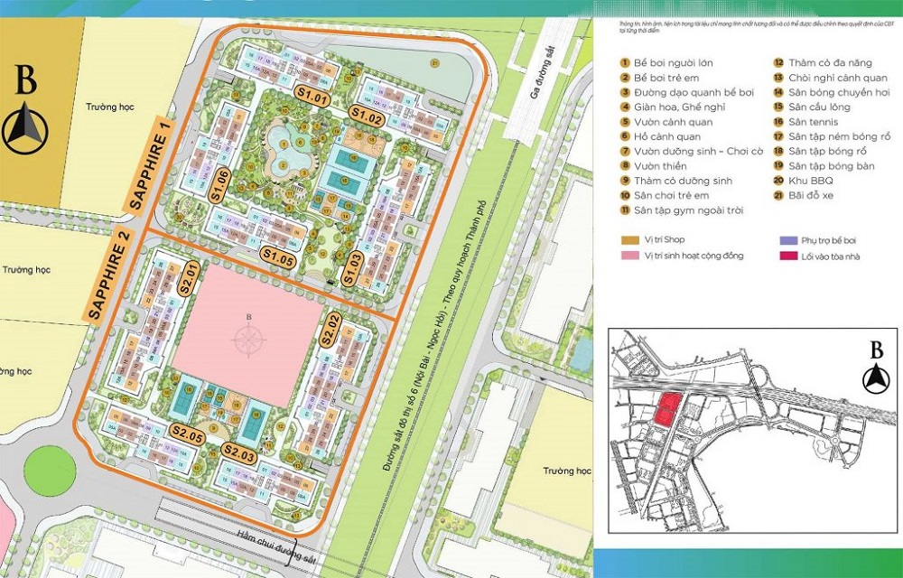 - Phân khu sapphire 1 của dự án đã ra mắt 5 tòa gồm: Tòa S1.01, S1.02, S1.03,S1.05 và S1.