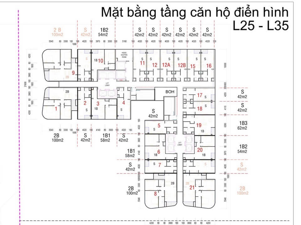 + Loại căn hộ studio được triển khai xây dựng với diện tích chỉ 42m2 nhỏ gọn, được nhiều khách hàng và nhà đầu tư lựa chọn. Mât độ bố trí loại hình này chỉ 14 căn/ tầng thuộc các tầng từ 4- 24 và 12 căn/ tầng với các vị trí từ tầng 5 - 35.