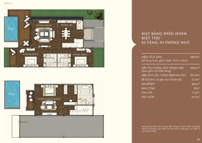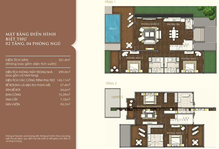 – 48 căn biệt thự 2 tầng 3 phòng ngủ, diện tích từ 369.92m2