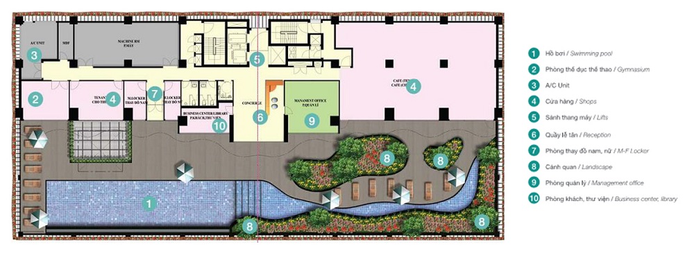 - Quy mô: 3.150m2, bao gồm 25 tầng với 86 căn hộ trên không